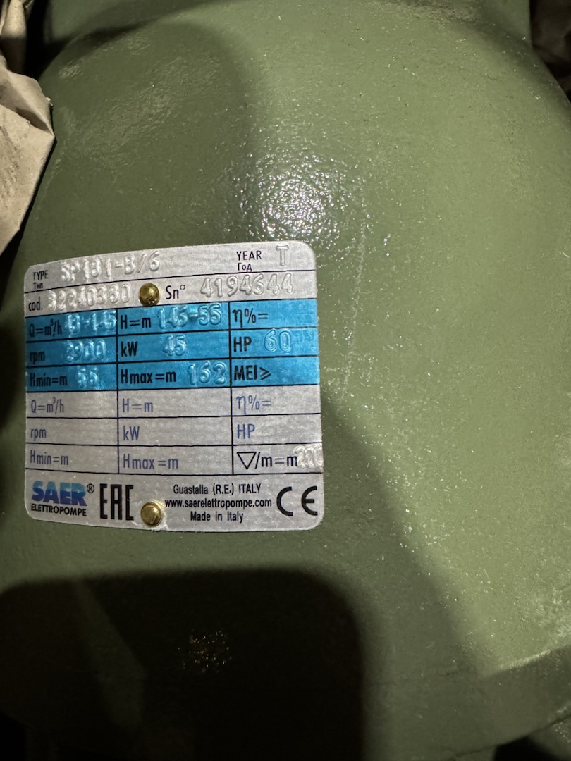 Мы рады сообщить о недавней успешной поставке насосного агрегата для нашего клиента УМК-Сталь. Из-за санкций оборудование WILO-EMU NK-86-5 больше не доступно для поставок в Россию. Однако, благодаря нашим усилиям, мы нашли идеальную замену — насос Saer 8"SP181B/6-GMOT8 с электродвигателем MS201-60С из Италии.